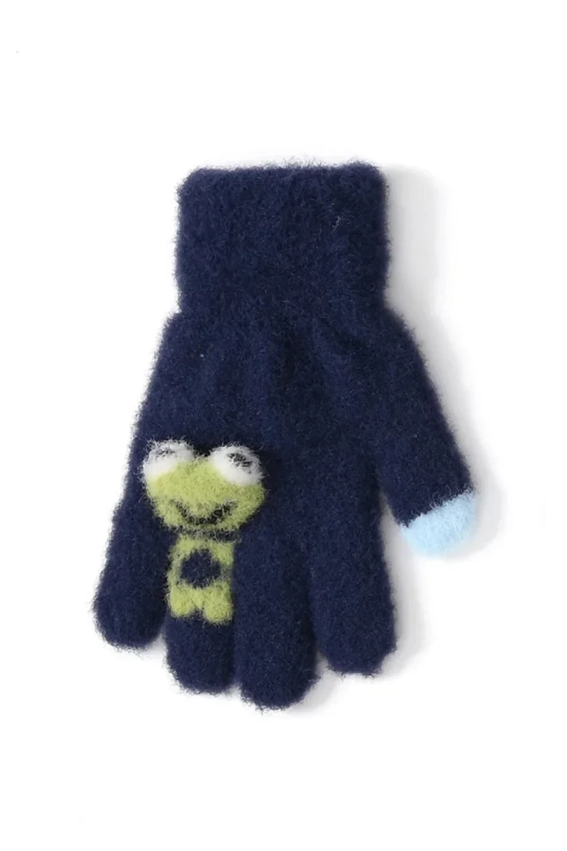 Chlapecké huňaté rukavice s pěti prsty a 3D žabkou.