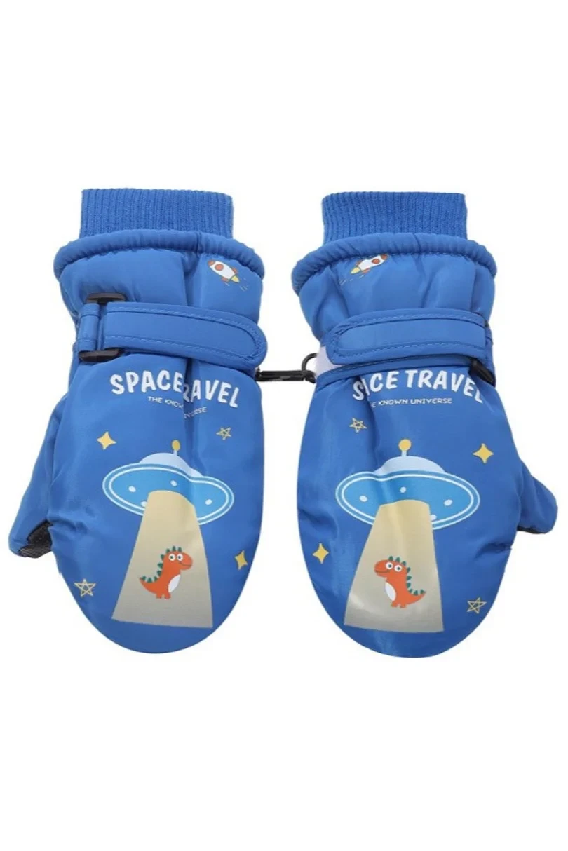 Rukavice Orthalion s potiskem, zateplené, jednoprsté pro chlapceó.Rukavice zakončené manžetou s páskem pro nastavení šířky - dobře drží na rukojetích, chrání před sněhem.