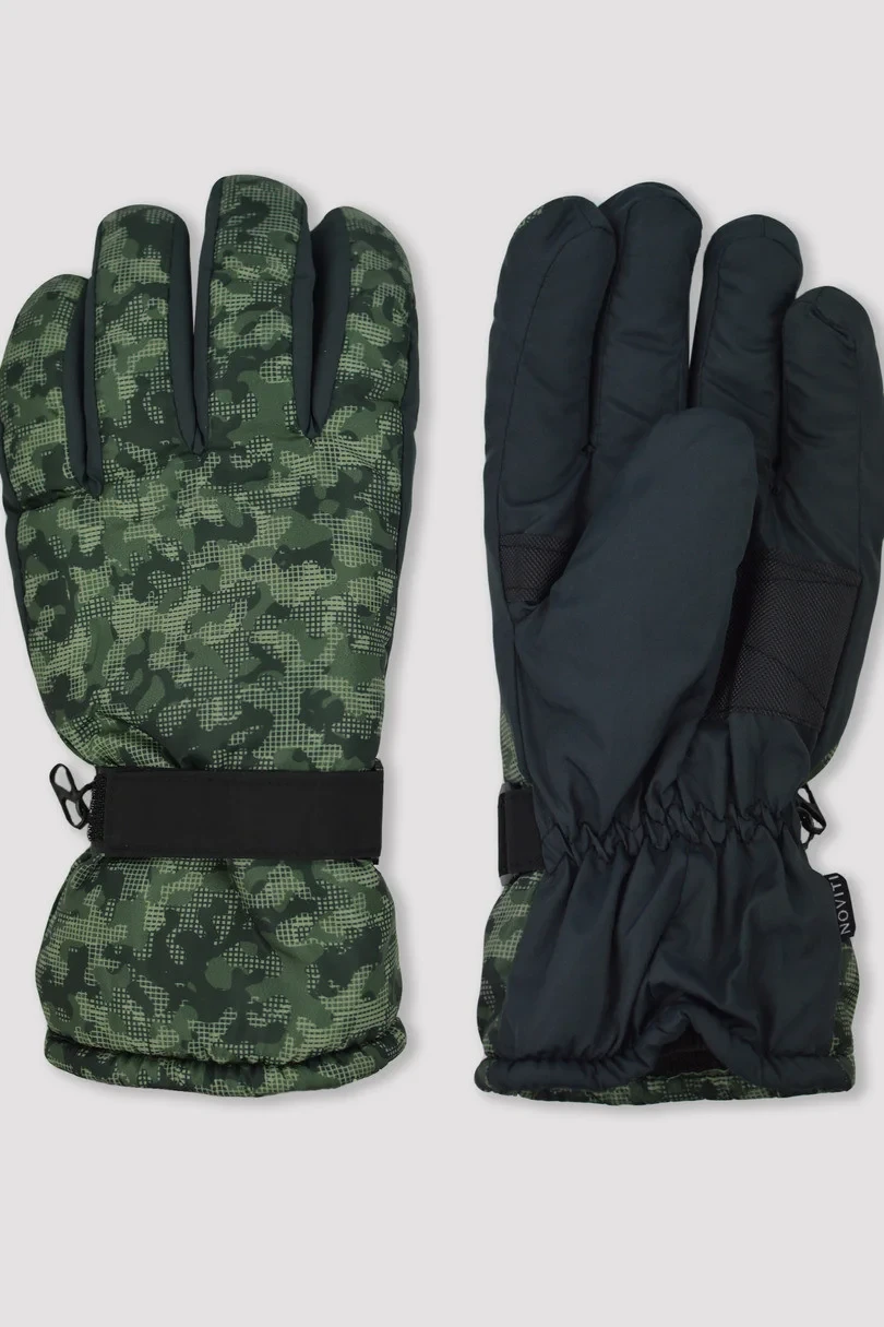 Zateplené chlapecké rukavice s potiskem a pěti prsty z ortalyonu. Zakončené manžetou s páskem pro nastavení šířky - dobře sedí na rukou, chrání před sněhem.