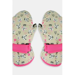 Dívčí zateplené rukavice s potiskem Orthalion a jedním prstem. Rukavice zakončené manžetou s páskem pro nastavení šířky - dobře drží na rukojetích, chrání před sněhem.