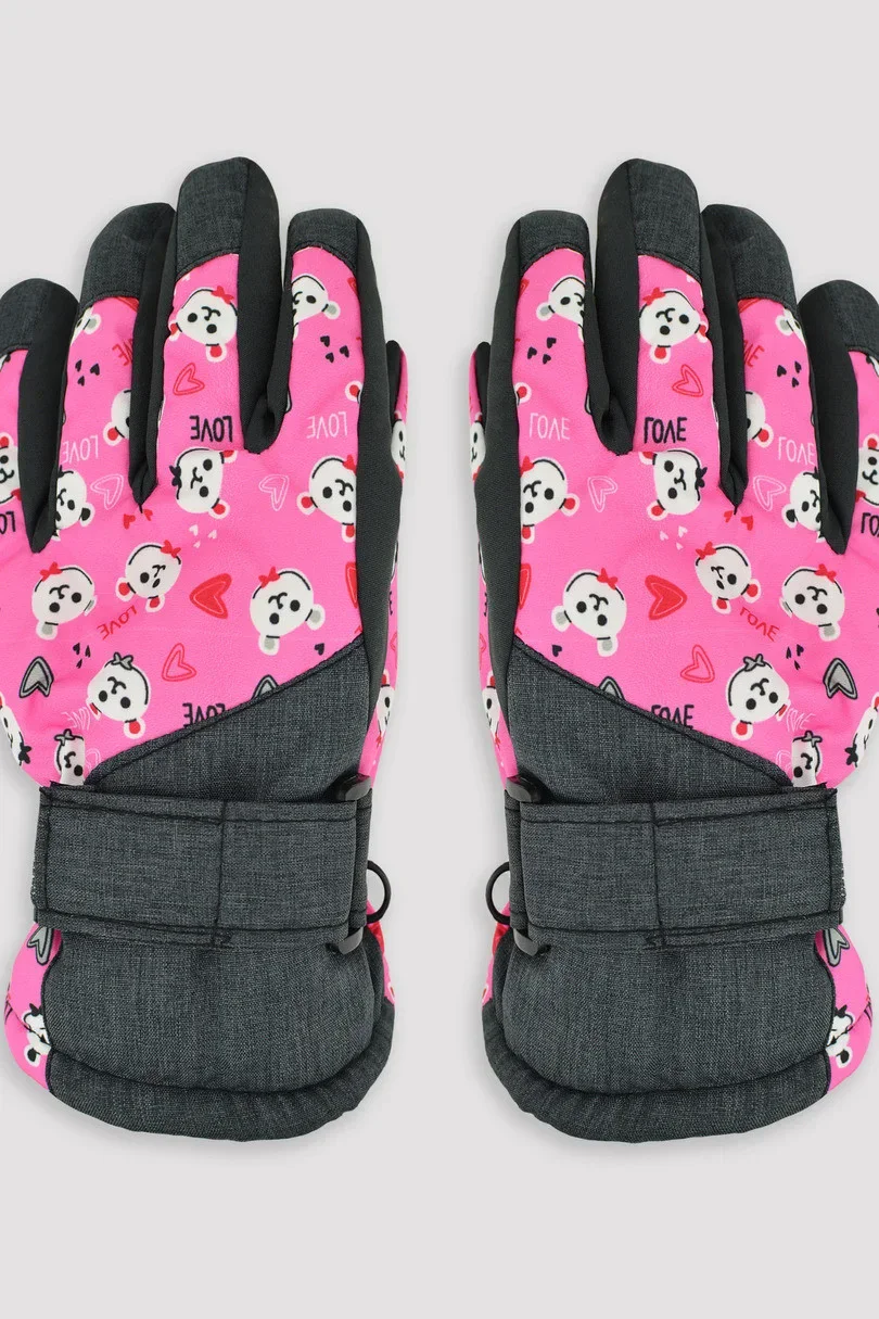 Rukavice Orthalion s potiskem, zateplené, pětiprsté pro dívky. Rukavice zakončené manžetou s páskem pro nastavení šířky - dobře drží na ruce, chrání před sněhem.