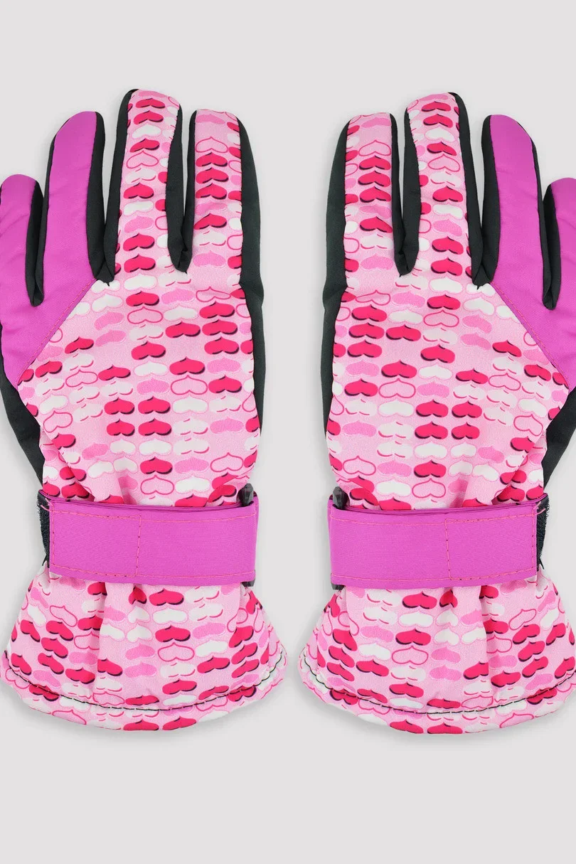 Dívčí zateplené pětiprsté rukavice s potiskem a ortaly. Rukavice zakončené manžetou s páskem pro nastavení šířky - dobře drží na rukou, chrání před sněhem.