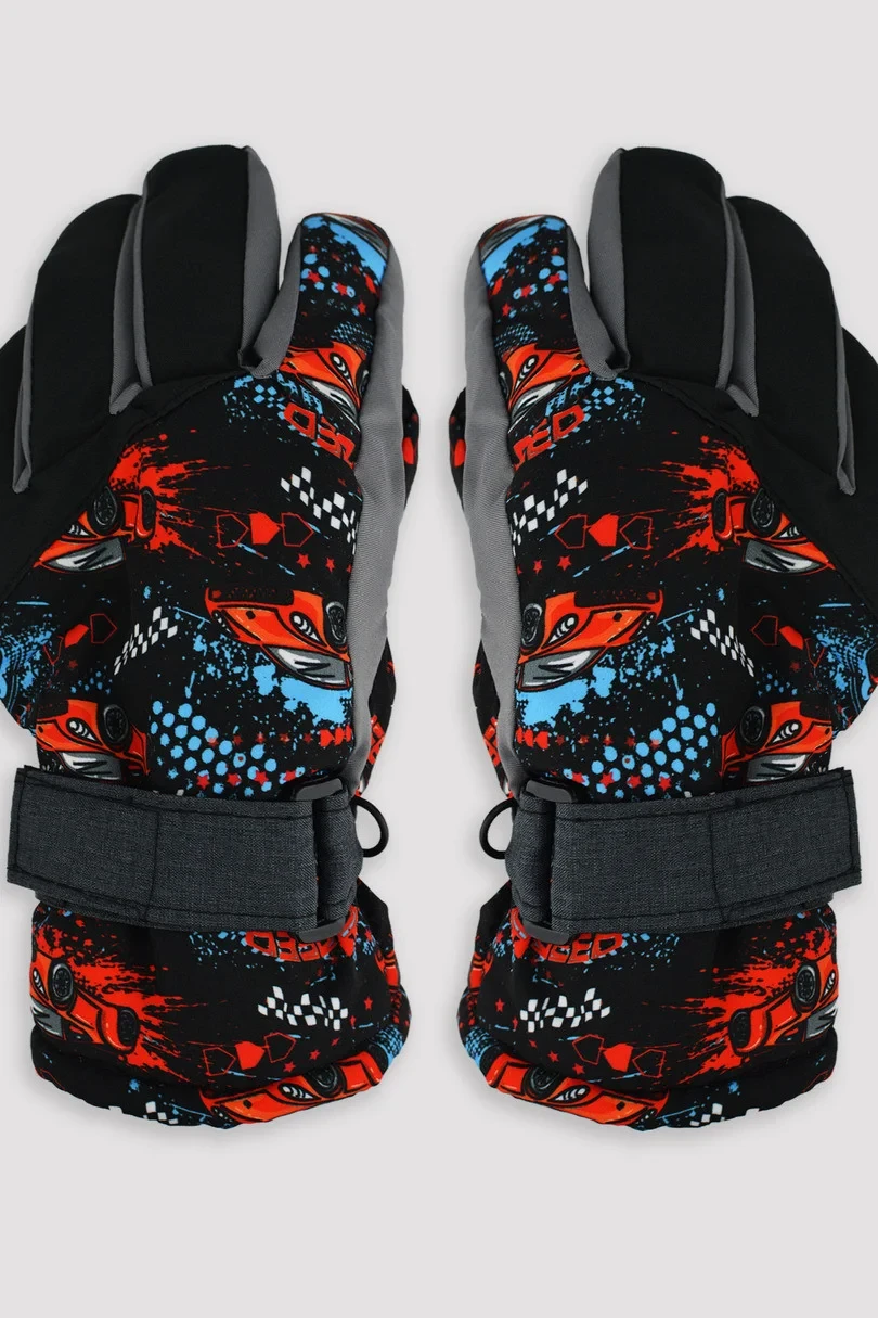 Chlapecké zateplené pětiprsté rukavice s potiskem OrthalionóRukavice zakončené manžetou s páskem pro nastavení šířky - dobře drží na rukou, chrání před sněhem.