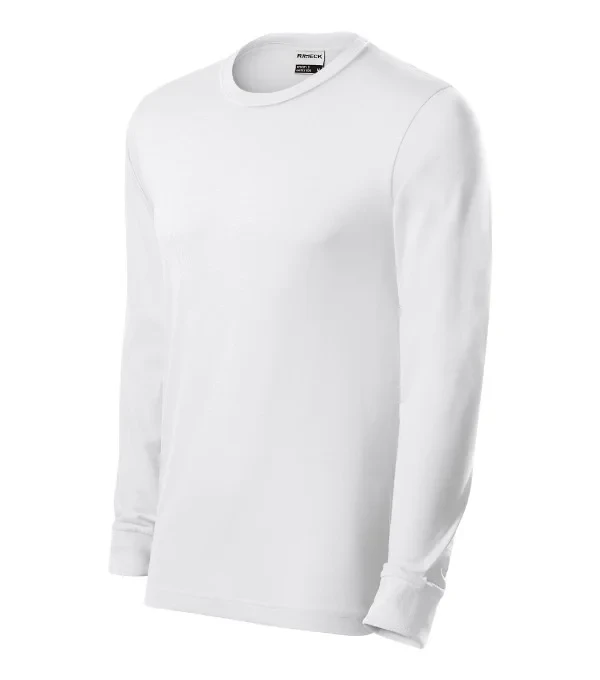předsrážená bavlna odolná vyšším teplotám pratelné na 95 °C (bílé) a 60 °C (barevné) střih s bočními švy průkrčník lemován žebrovým úpletem 1:1 zpevnění ramenních švů páskou dlouhé rukávy s manžetou manžeta z žebrového úpletu 1:1 Produkt je dostupný ve dvou variantách: s/bez brand labelu v bočním švu (viz přehled barev). Varianta s brand labelem pouze do vyprodání zásob.