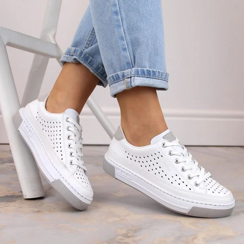 Rieker W RKR642 bílá kožená prolamovaná obuv