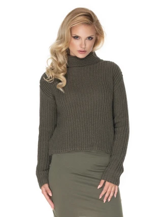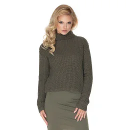 Krátký svetr s otevřenými zády. Svetr s dlouhými rukávy a rolákem.
