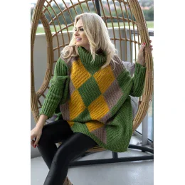 Dámský svetr pončo střihu s dlouhými rukávy a rolákem. Svetr je měkký a nadýchaný na dotek.