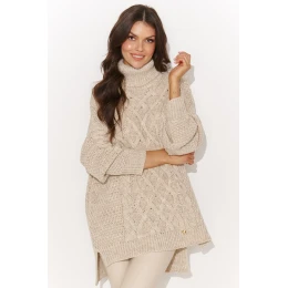 Dámský svetr z hřejivého fleecu. Skutečná lahůdka pro milovníky zimního pohodlí. Svetr se zastrčí přes hlavu. Má asymetrický střih, zadní díl je o něco delší než přední. Na bocích svetru je viditelný rozparek, který mu dodává na lehkosti a ležérnosti. Svetr má velkorysý a hřejivý rolák a dlouhé rukávy s praktickými žebrovanými konci. Jeho výrazným prvkem jsou různé vzory, včetně efektních plédů umístěných na přední straně. Tento svetr se skvěle kombinuje s legínami nebo přiléhavými kalhotami a lze jej nosit i jako tuniku. K dostání ve třech barevných provedeních. Tento model svetru vám umožní vyjádřit váš individuální styl a poskytne neuvěřitelnou volnost, přičemž dodá vašemu vzhledu charakter.