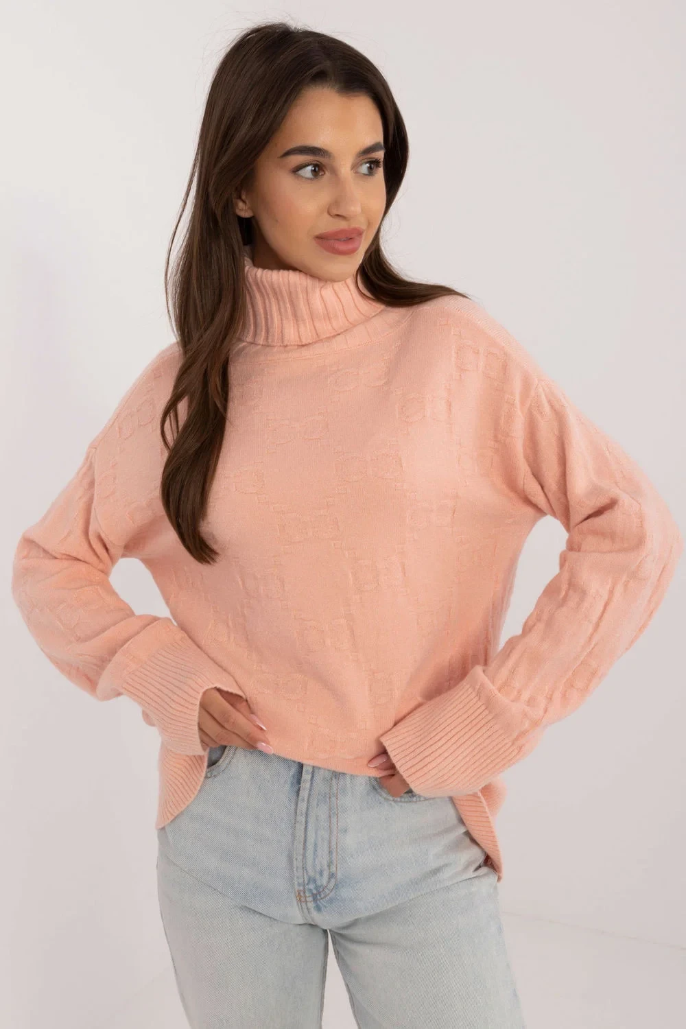 Dámský golfový svetr, ideální pro každodenní příležitosti v casual stylu. Vyrobený z materiálu s různorodou fakturou, co mu dodává jedinečný charakter. Hlavním materiálem je směs akrylu, polyesteru a polyamidu, co zaručuje odolnost a pohodlí při nošení. Svetr má standardní délku a dlouhé rukávy, co ho činí univerzální volbou na chladnější dny.