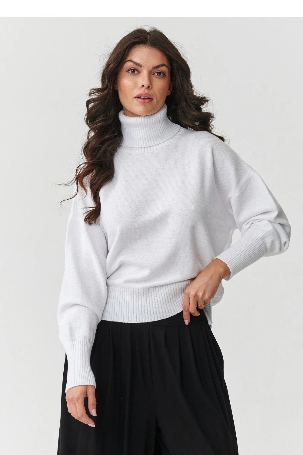 Vsadíte na eleganci a pohodlí v nejlepším provedení. Tato dámská svetr s golfovým límcem je must-have v každé skříni. Vyrobena z vysoce kvalitní pleteniny s unikátním složením 51% viskóza, 30% PBT a 19% nylonu okouzlí měkkostí, pružností a odolností. Díky viskóze je svetr velmi příjemný na dotek, umožňuje pokožce dýchat a krásně se přizpůsobuje postavě. Přídavek syntetických vláken zajišťuje, že materiál se nekroutí, udržuje si tvar i po mnoha praních a nežmolkuje se, co zaručuje dlouhou životnost výrobku. Proč si vybrat tento model? Klasický golfový límec chrání před chladem a dodává eleganci, ideální na podzim a zimu. Oversize střih s lehce sníženou linií ramen zajišťuje volnost pohybu a pohodlí nošení. Elastické lemy na rukávech a dole svetru dodávají celku módní charakter. Univerzální design ? skvěle se hodí jak do každodenních, volných stylizací, tak do elegantních setkání v práci nebo na schůzky. Skvěle ladí s klasickými džíny, elegantními látkovými kalhoty nebo plisovanou sukní. Můžete ho nosit jak s kotníčkovými botami, tak s sportovními teniskami vždy vypadá stylově. Pokud hledáte svetr, který spojí pohodlí, kvalitu a nadčasový styl, tento model s golfovým límcem bude vaším oblíbeným kouskem oblečení po mnoho sezón.