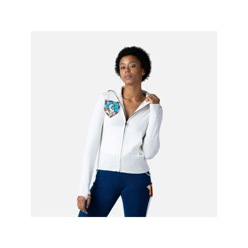 Dámská celorozepínací blůza Rossignol Galina kombinuje představivost francouzského módního návrháře Jeana-Charlese de Castelbajaca s kosmickou inspirací a duchem vysokohorských sportovních výzev. Tato blůza plná zábavy potěší barevnou grafikou, která odkazuje do vesmíru, a je vyrobena z měkké vlny pro pohodlí a teplo při odpočinku po dni stráveném na svahu.