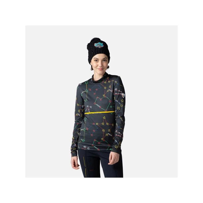 Damska bluzka Rossignol Saturn przynosi kosmiczną energię do Twojego stylu na stoku. Zainspirowana przestrzenią kosmiczną i stworzona w oparciu o kreatywną wizję francuskiego projektanta mody, Jean-Charlesa de Castelbajaca, ożywia Twój wygląd dzięki konstelacji barw.