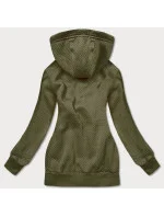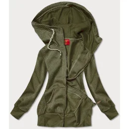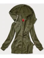Dlouhá rozepínací dámská mikina v khaki barvě (AMG-819)