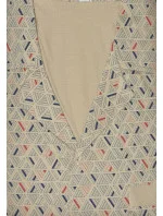 Pyžamo je dlouhé. Vzorovaná blůza se rozepíná, je ozdobená límečkem a doplněná kapsičkami. Dlouhé kalhoty jsou jednobarevné.
