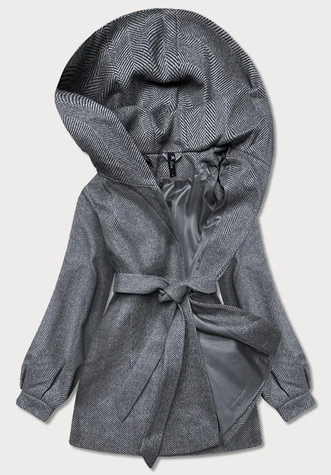 Šedá dámská rozšířená bunda se vzorem rybí kost (2726)