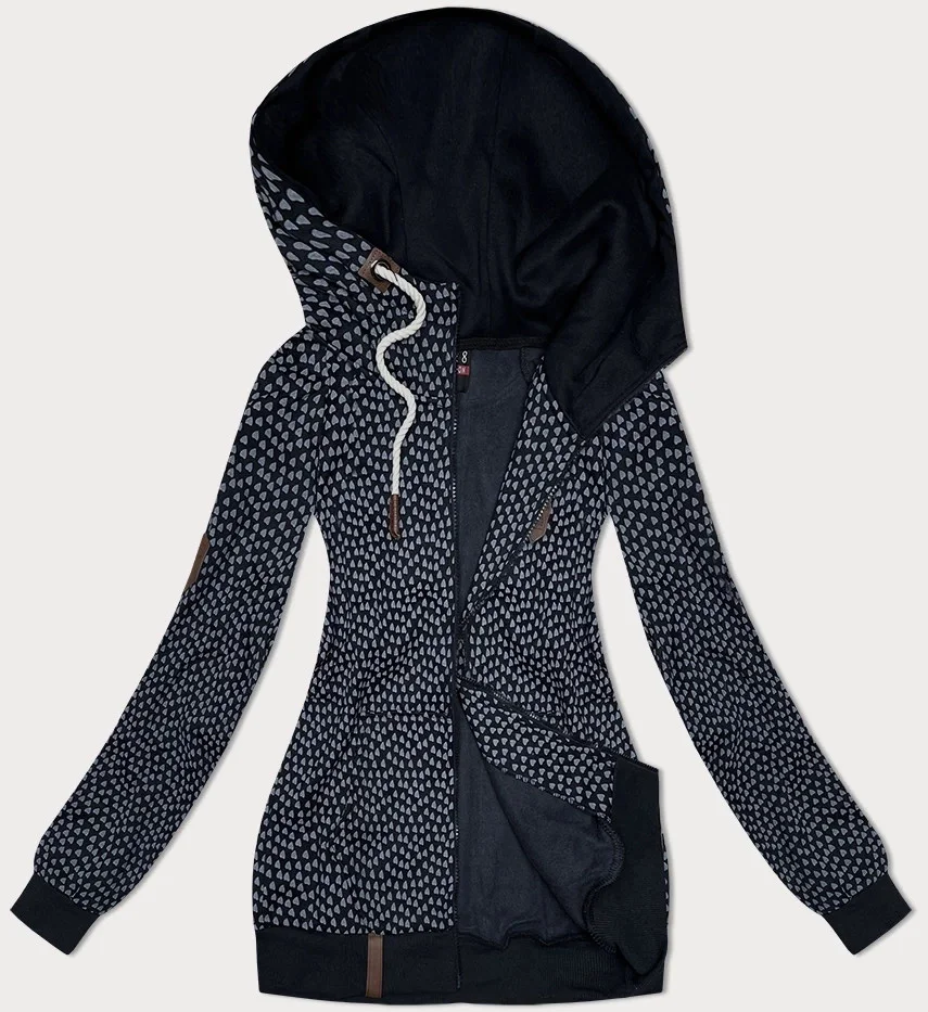 Tmavě modrá rozepínací dámská mikina se vzorem srdíček (2315)
