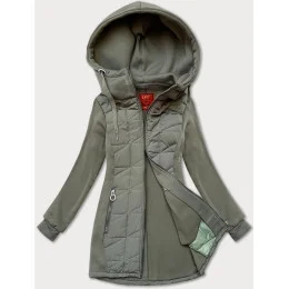 Šedozelená rozepínací dámská mikina z různých spojených materiálů LHD (AMG-165)