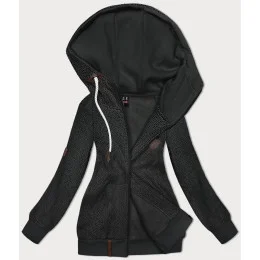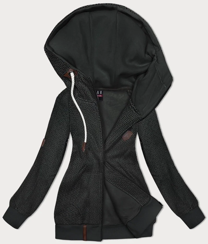 Rozepínací mikina v grafitové barvě s kapucí a se vzorem drobných srdíček (2316)