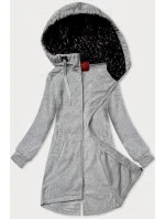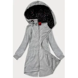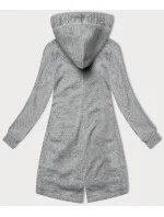 Světle šedá dlouhá dámská rozepínací mikina s kapucií LHD (AMG-693A)