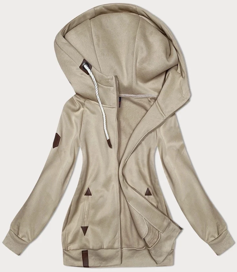 Béžová hladká dámská rozepínací mikina (2311)
