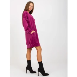 Fialové volné velurové šaty s kapsami RUE PARIS .