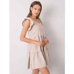 RUE PARIS Béžové šaty s hráškovým vzorem a volánem.