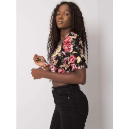 RUE PARIS Černá halenka s květinovými vzory.