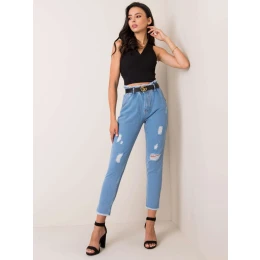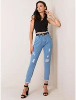 RUE PARIS Modré džíny s vysokým pasem a roztržením.