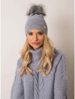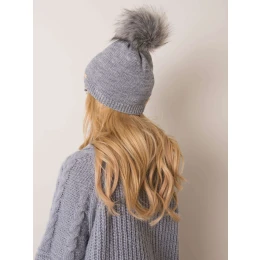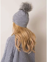 RUE PARIS Šedá čepice s bambulí Polský výrobek