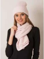 RUE PARIS Světle růžový set čepice a šály Polský výrobek