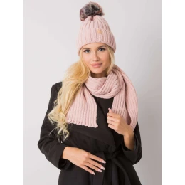 RUE PARIS Světle růžový zimní set čepice a šály Polská výroba