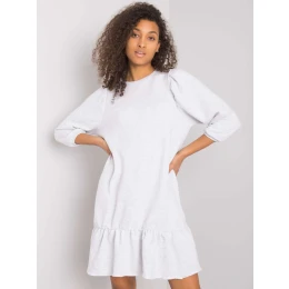 RUE PARIS Světle šedé melanžové šaty s volánem.