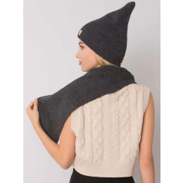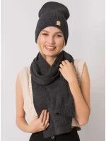 RUE PARIS Tmavě šedá zimní souprava s čepicí a šálou Čepice made in Poland