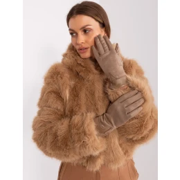 Tmavě béžové rukavice s vložkami z ekokůže .