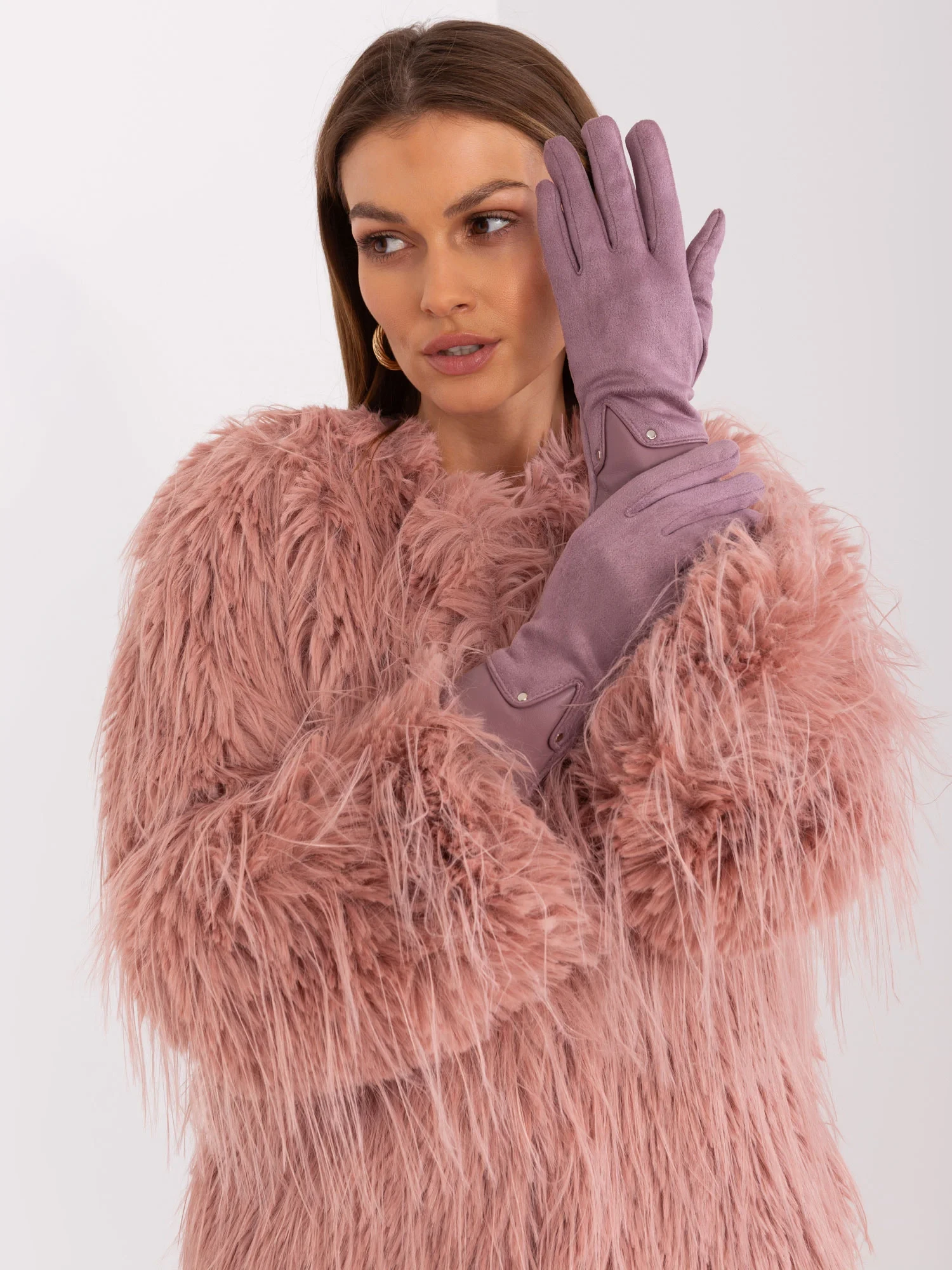 Fialové rukavice s vložkami z ekokůže .