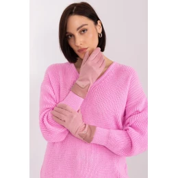 Elegantní dámské rukavice vyrobené z kombinace dvou různých materiálů. Palec a ukazováček s vyšívanou květinou umožňují ovládat telefon, aniž byste si museli rukavice sundávat.
