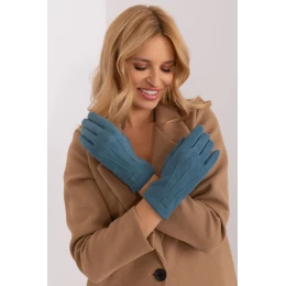 Elegantní dámské rukavice z hladké zateplené tkaniny. Ozdobné nášivky na zápěstí. Ukazováček s vyšívanou květinou, která umožňuje ovládat telefon bez nutnosti sundávat rukavice.