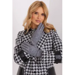 Elegantní dámské rukavice z látky s ozdobným geometrickým vzorem. Ozdobné knoflíky s povrchovou úpravou na zápěstí. Ukazováček s vyšívanou květinou, který umožňuje ovládat telefon bez sundávání rukavic.