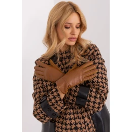 Elegantní dámské rukavice vyrobené z kombinace dvou různých materiálů. Ozdobné pásky s knoflíky na zápěstí. Ukazováček s vyšívanou květinou, který umožňuje ovládat telefon, aniž byste si museli rukavice sundávat.