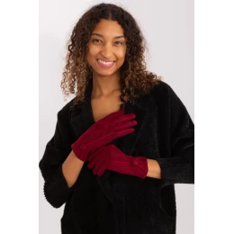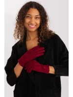 Elegantní dámské rukavice ze zateplené tkaniny s ozdobným geometrickým vzorem. Ozdobné potahované knoflíky na zápěstí. Ukazováček s vyšívanou květinou, který umožňuje ovládat telefon bez sundávání rukavic.