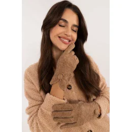 Elegantní dámské rukavice ze zateplené hladké tkaniny. Ozdobný knoflík a rozparek na zápěstí. Ukazováček s vyšívanou květinou, který umožňuje ovládat telefon bez sundávání rukavic.