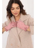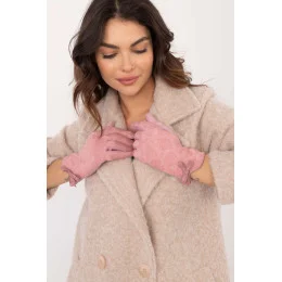 Elegantní dámské rukavice z teplého materiálu s zajímavým vzorem. Na zápěstí ozdobné mašličky. Ukazováček s vyšívaným kvítkem umožňuje obsluhu telefonu bez nutnosti sundavat rukavice.