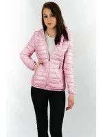 Růžová prošívaná dámská bunda s kapucí (B9561)