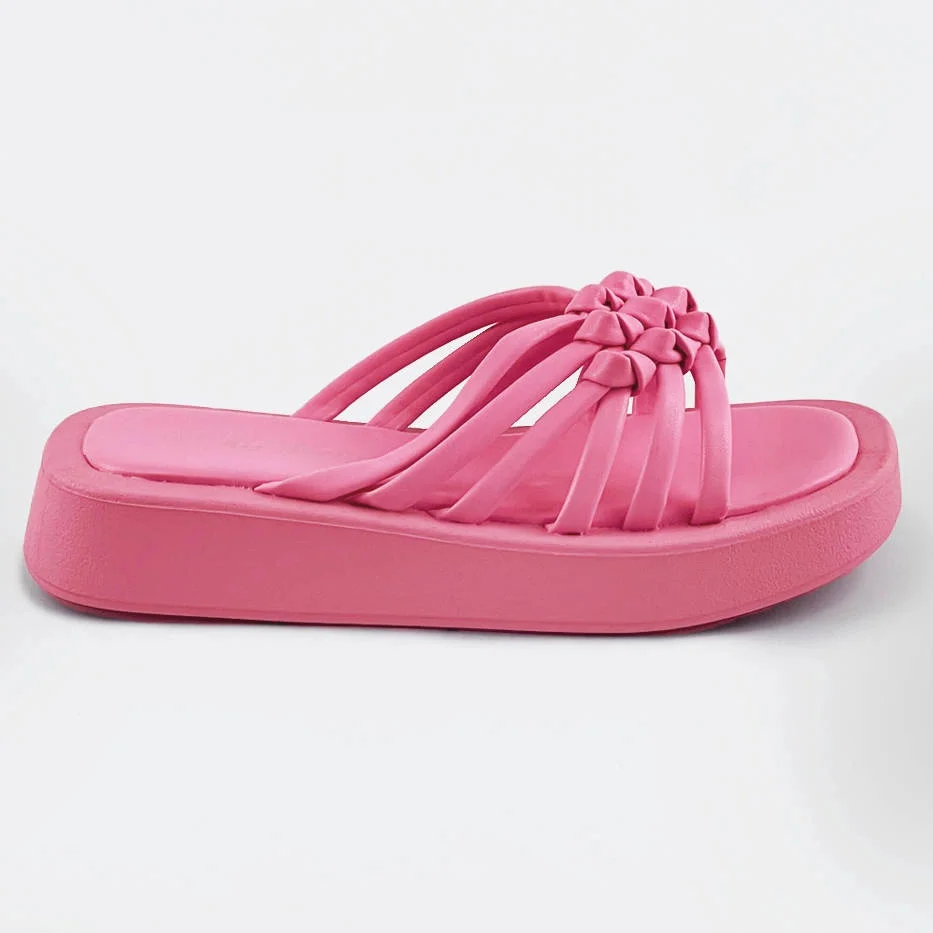Růžové dámské pantofle s plochou podrážkou (CM-59)