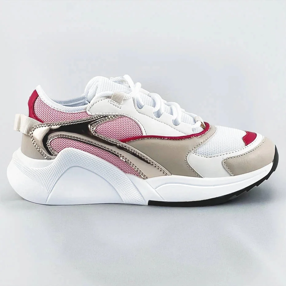 Růžové šněrovací sneakersy s barevnými vsadkami (6346)