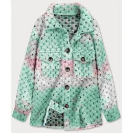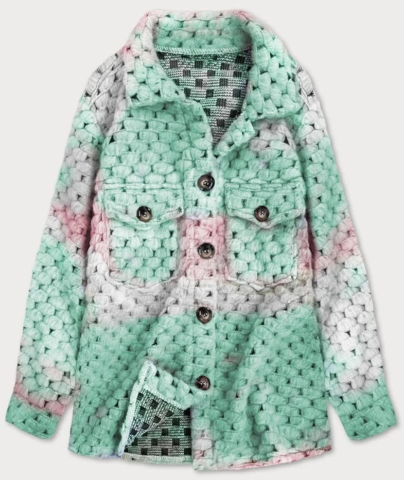 Růžovo-mátová dámská košilová bunda se stojáčkem (1132)