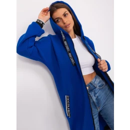 Kobaltová dlouhá mikina na zip s nápisy .