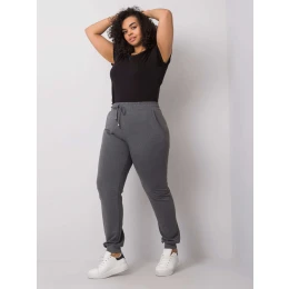 Tmavě šedé melanžové dámské plus size tepláky.
