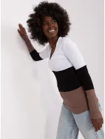 Modelka má na sobě velikost 2XL. Rozměry modelky: výška 180 cm, prsa 113 cm, pas 93 cm, boky 123 cm.