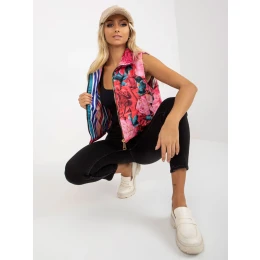 Růžová krátká květinová vesta s kapsami .